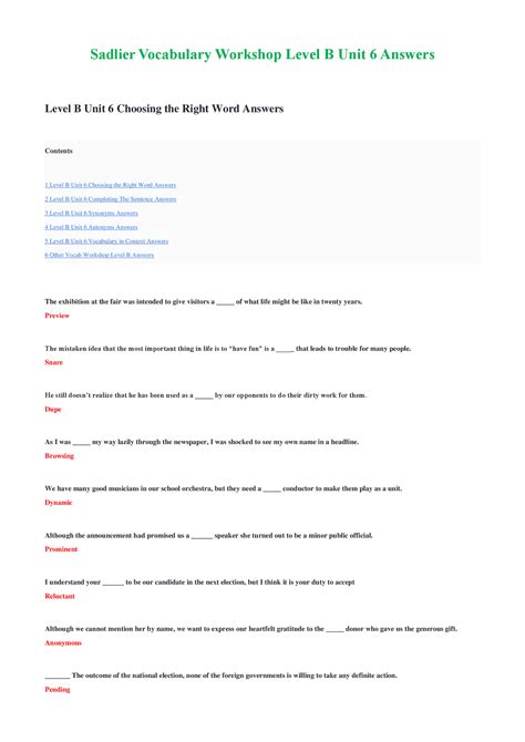 Download Sadlier Vocabulary Level A Answers PDF