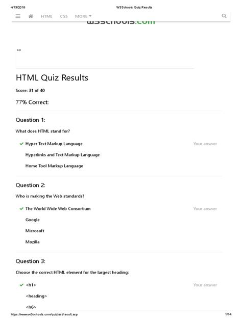 Read Online Html Quiz W3schools Answer PDF